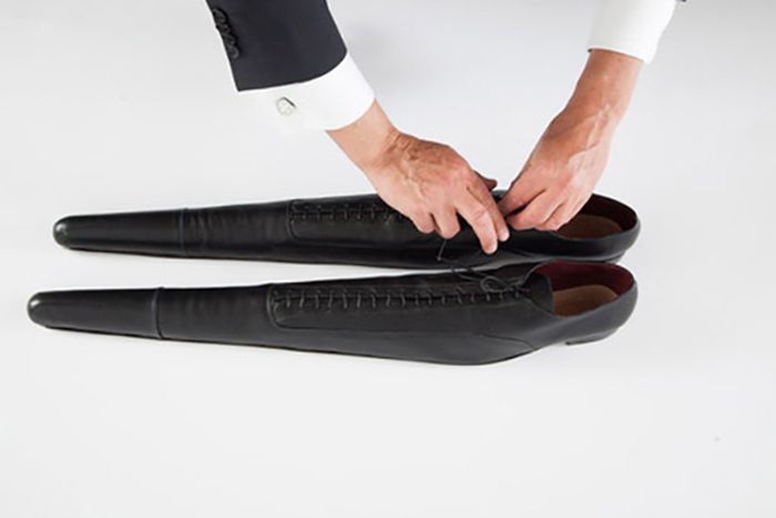 Мужчины часто меряются размерами автомобиля, дома или зарплаты, что девушку Полину Ленуар (Paulina Lenoir) такое соперничество натолкнуло на создание очень длинных мужских туфель. дизайнер изготовила их из высококачественной телячьей кожи, а носки наполнила силиконом, чтобы они лучше держали форму. Каждый такой туфель весит ровно килограмм. Теперь мужчины могут смело меряться и длиной собственной обуви.